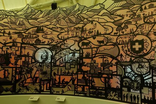 スイスパビリオンの切り絵 突然ですが、アルプスの少女ハイジって知ってますか? 私がまだ子供だった頃、テレビのアニメ番組でちらっと見たことがあります。もっとも男の子だった私はそのアニメの内容についてはそれほど詳しくはなく、ペーターという男の子…